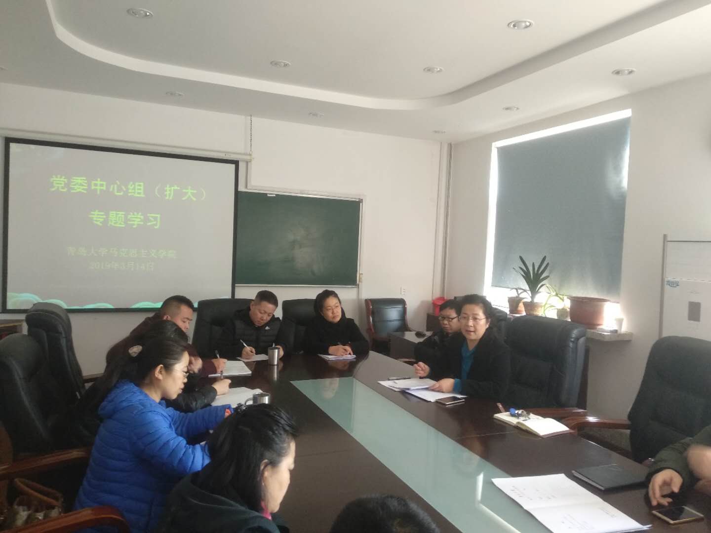 3月14日上午,Beat365唯一官方网站党委理论学习中心组(扩大)专题学习在笃行楼211进行。院党委书记赵茗主持学习,院领导班子成员尉利工、郭金鸿、姜文明及教研系部主任、支部书记、两办主任参加学习会。