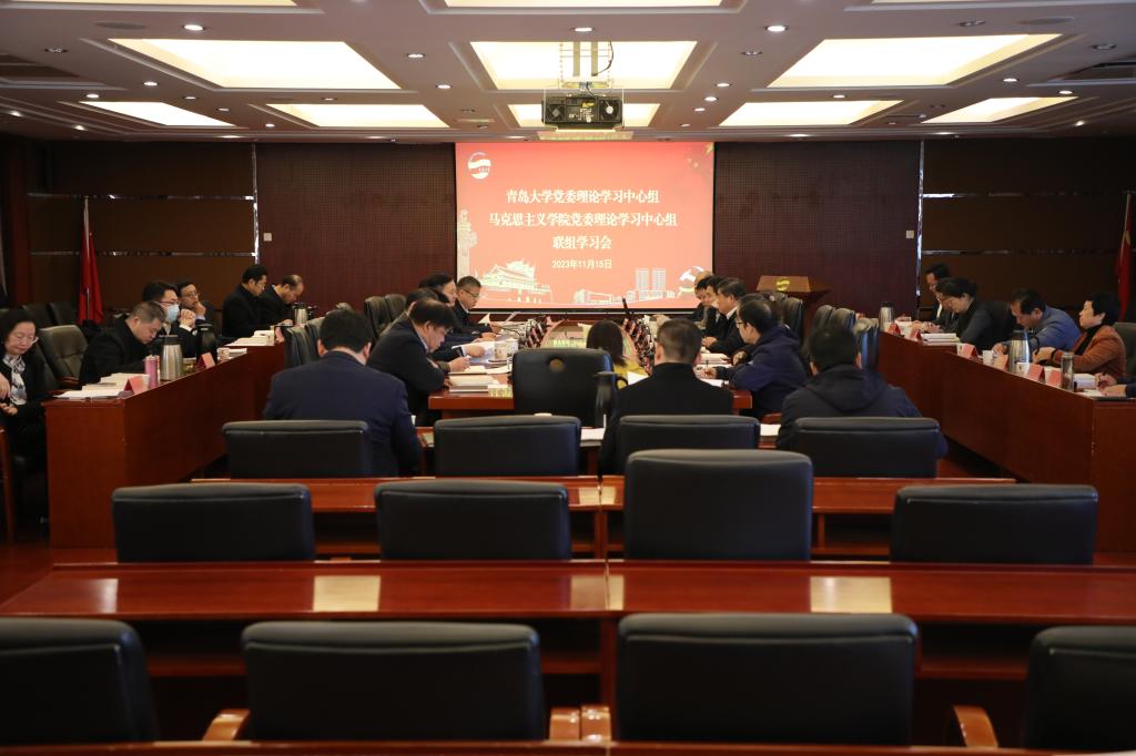 11月15日上午,校党委理论学习中心组在办公楼第一会议室与Beat365唯一官方网站党委理论学习中心组开展联组学习,专题学习研讨习近平关于中国式现代化重要论述。省委教育工委高校党委理论学习中心组学习列席旁听工作第七组组长、鲁东大学党委副书记马东太,鲁东大学党委常委、宣传部部长丛涛到会列席旁听并给予指导。党委书记胡金焱主持会议,校领导肖江南、李军、陈涛、李荣贵、吴世珍参加学习。