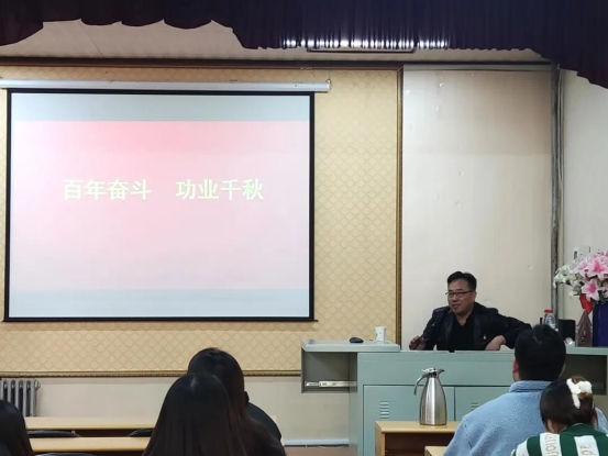 王延玉老师从百年来中国共产党带领中国人民不懈奋斗的历史出发,带大家领略决议背后蕴含的重要意义和历史经验。同时结合自身的工作经验与生活经历,对同学们提出了“我们在党的怀抱中成长,要感恩党,向党靠拢”的殷切期望。