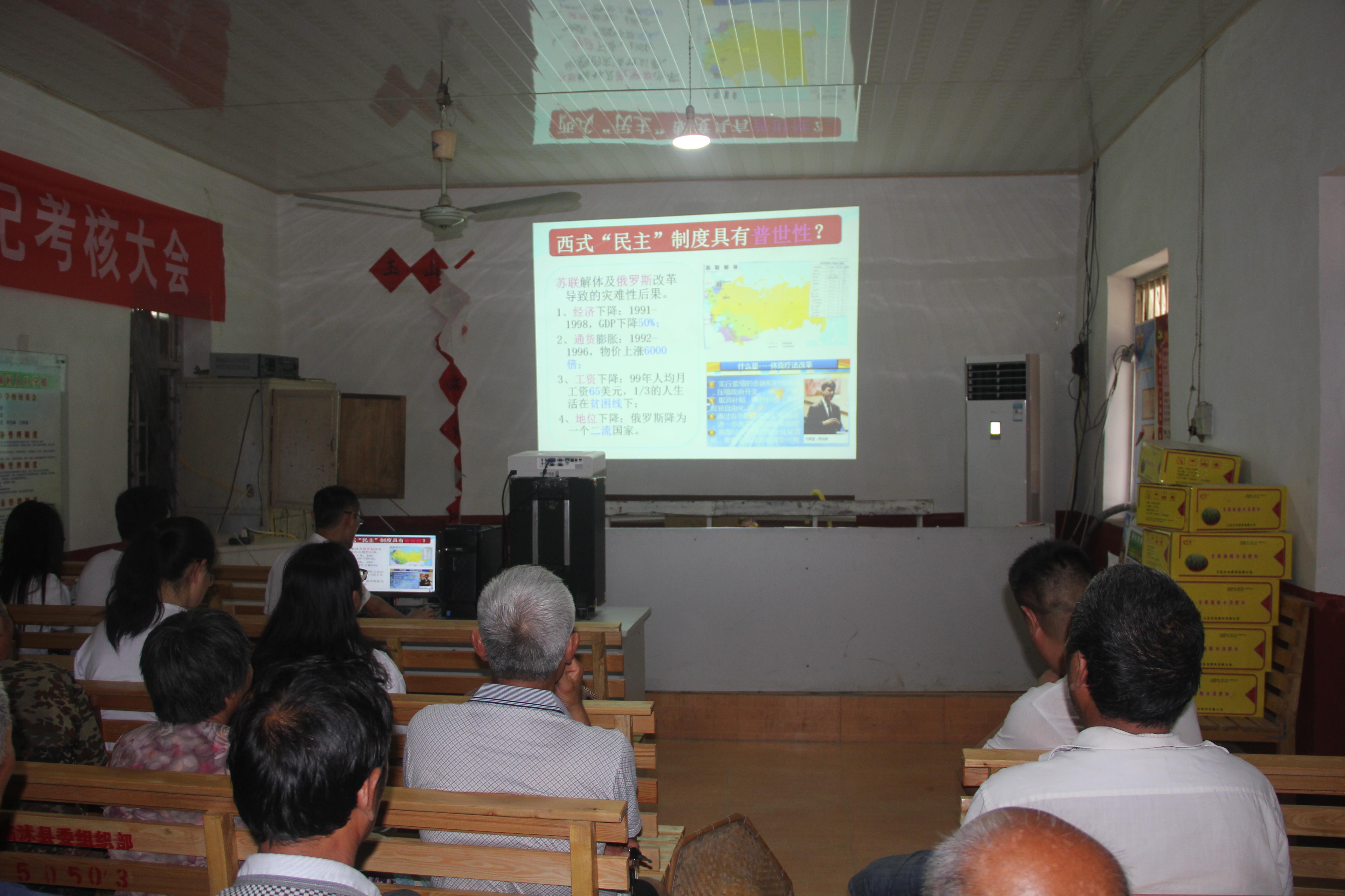 为全面推动“两学一做”学习教育深入开展,7月19日Beat365唯一官方网站形势政策研究室主任冯连余老师赴玉山镇后穆疃村为当地党员干部作了《坚持党的领导,加强制度自信》的专题辅导报告。后穆疃村第一书记王炳军、理论宣讲团全体成员以及全村党员干部出席本次报告会。
