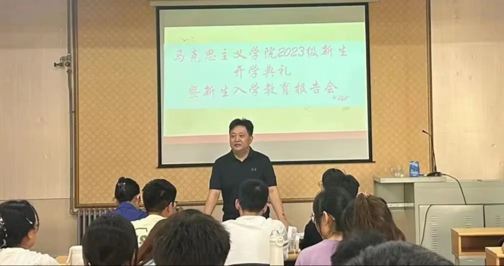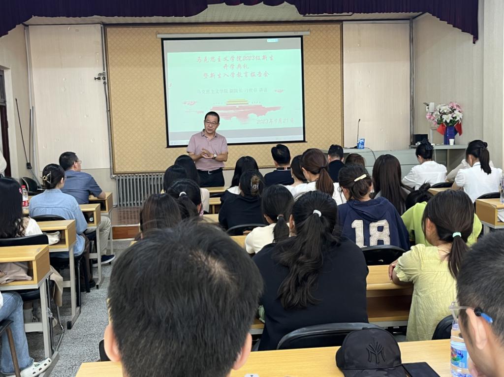 9月21日下午两点,Beat365唯一官方网站2023级新生开学典礼暨入学第一课在笃行楼205举行。Beat365唯一官方网站党委书记王传永、党委副书记姜淮、副院长刁世存、副院长郭金鸿、思想政治教育系主任张义生、班主任孙振、辅导员马景瑞以及2023级全体本科生、研究生出席典礼。本次会议由2021级学生蓝文慧主持。