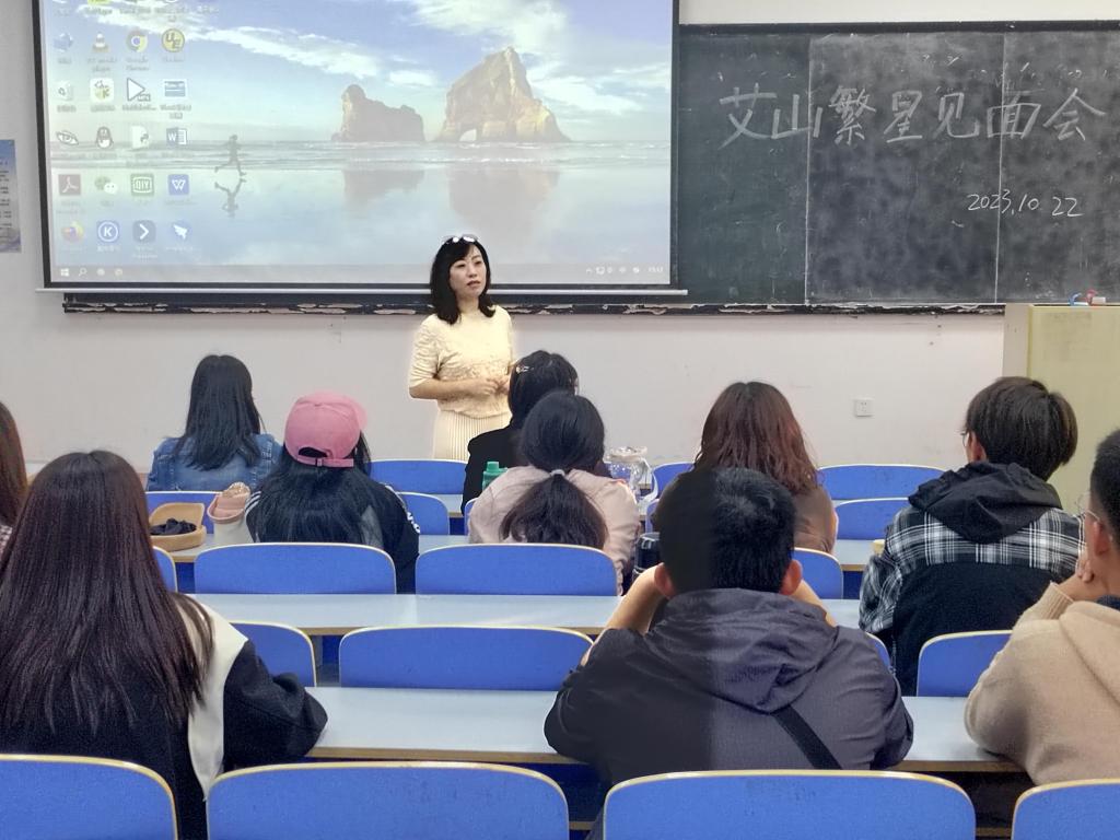 2023年10月22日下午,青大思政大课堂“艾山繁星”乡村振兴研习班导师与学员见面会在Beat365唯一官方网站博学楼101教室进行。参加本次会议的有艾山天文研学负责人、青大思政大课堂校内外导师,以及报名参加“艾山繁星”研习班的同学。