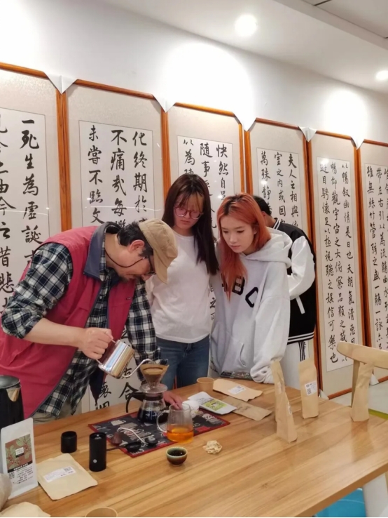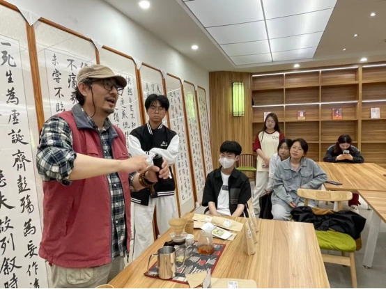 活动现场,巴萨老师首先给大家展示了手冲咖啡的制作过程。煮水、热杯、磨豆、冲泡、打圈,全神贯注,非常治愈。同学们端起这杯手冲咖啡,感受着酸、甘、醇、苦这些味道在咖啡中交织融合,在舌尖绘制出一幅幅丰富多彩的画面。