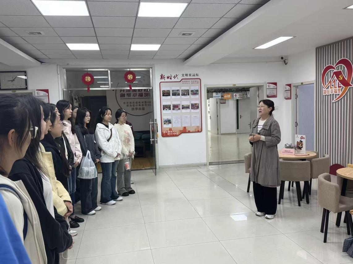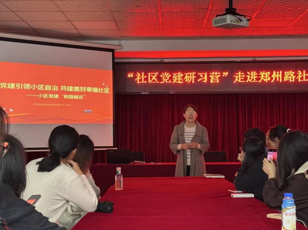 参观结束后,王艳芳书记围绕“社区党建实践与‘大思政’课融合”开展座谈,以“党建引领小区自治 共建美好幸福社区——小区党建‘新园模式’”为核心,通过“党组织强起来,小区自治有保障”“党员率先行动,小区自治解难题”等要点,系统阐释新园小区以党组织引领推进居民自治的路径。同时,她提出将社区治理中的停车难题破解、生态阵地建设、志愿服务培育等实践,转化为“大思政”课鲜活素材,并与参与人员互动交流,探讨如何让思政教育扎根基层一线。
