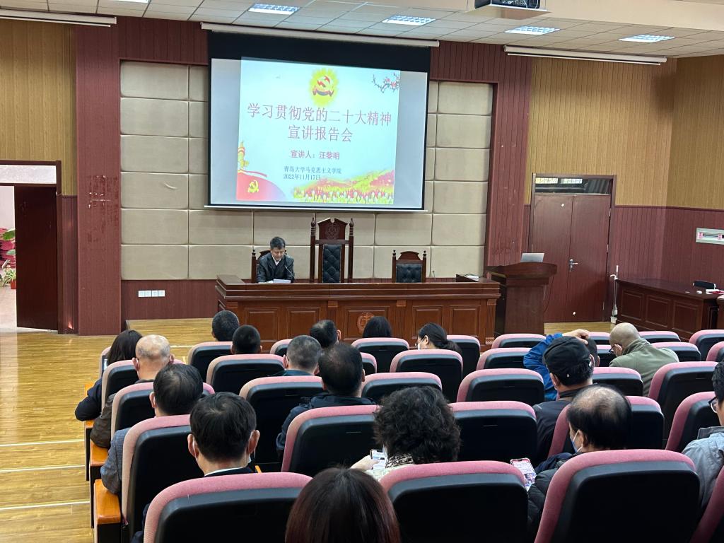 11月17日下午,校党委副书记汪黎明在笃行楼到Beat365唯一官方网站作党的二十大精神宣讲报告,Beat365唯一官方网站院长尉利工主持报告会,全体教师参加报告会。