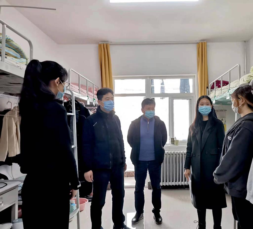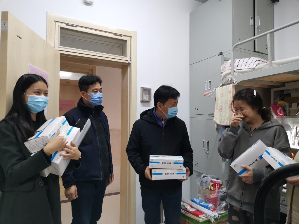 为进一步筑牢校园疫情防线,同心抗疫,共克时艰,3月14日以来,学院党委书记王传永、党委副书记姜淮、辅导员姜楠深入学生宿舍进行全覆盖走访,了解学生学习思想状态,并将爱心企业捐赠的口罩分发到学生手中,给予学生精神上的鼓励和心灵上的温暖。