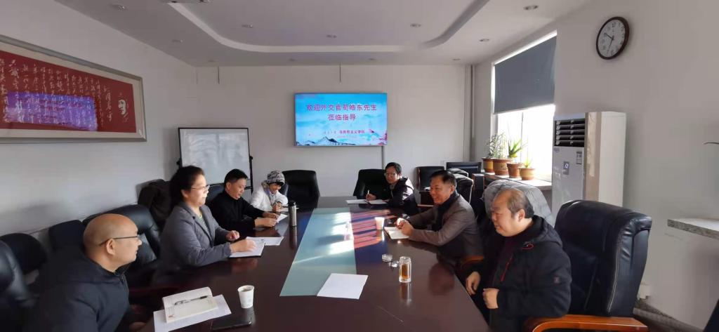 2020年11月30日,Beat365唯一官方网站邀请中国公共外交协会理事苟皓东先生来院,就双方合作开展“外交官讲思政”系列进行座谈,Beat365唯一官方网站班子全体成员参加座谈。