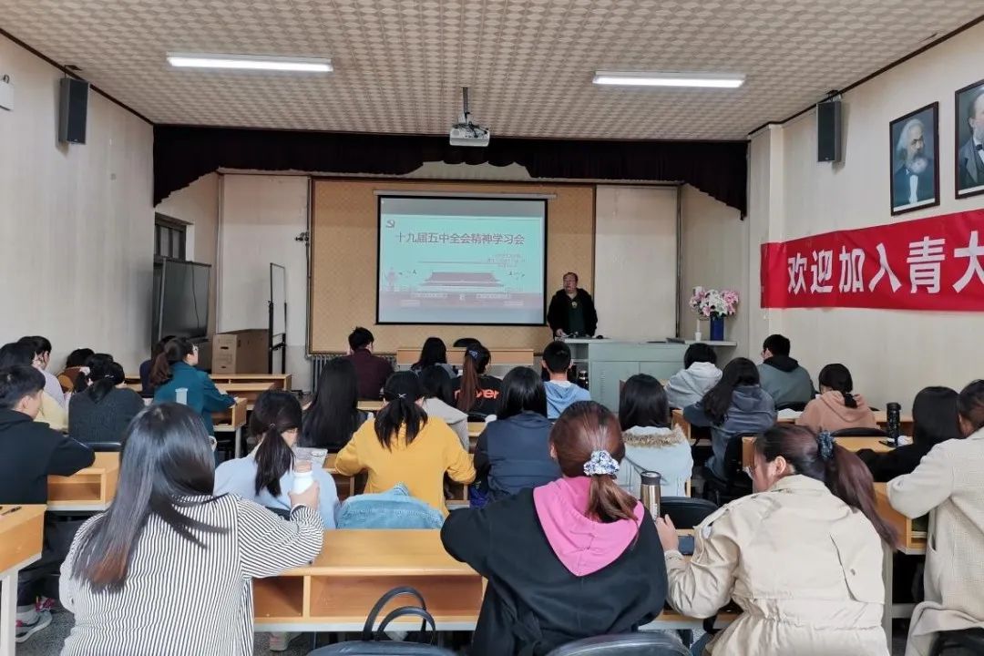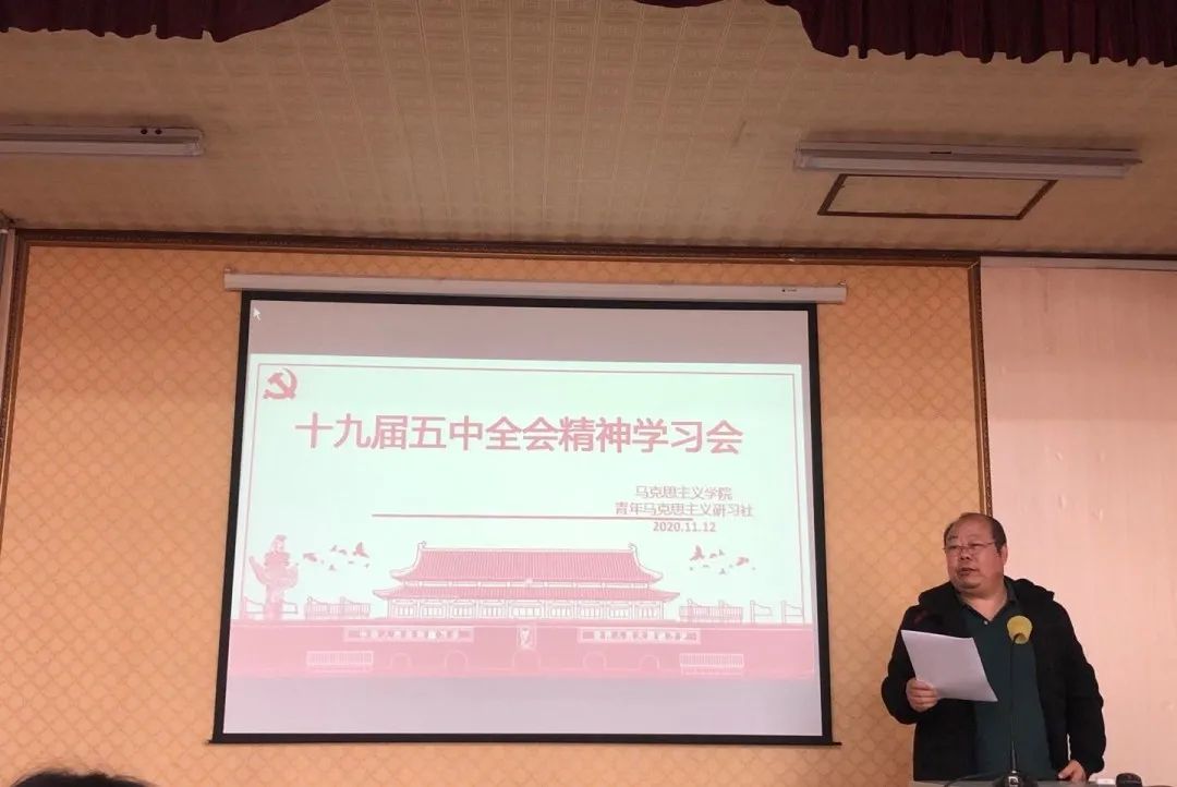 11月12日上午,Beat365唯一官方网站召开党的十九届五中全会精神学习会,Beat365唯一官方网站院长尉利工、党委副书记姜淮、辅导员张妍及Beat365唯一官方网站青年马克思主义研习社30余名学生党员和入党积极分子参加会议。