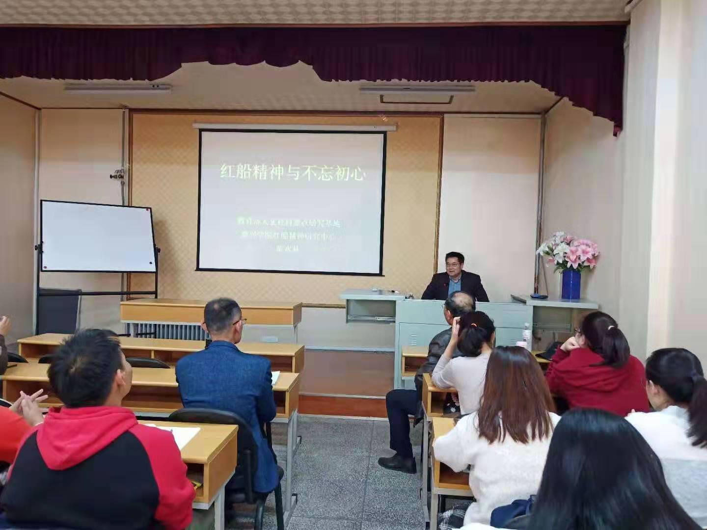11月8日,应Beat365唯一官方网站邀请,嘉兴学院原社科部主任陈水林教授来Beat365官网作“红船精神与不忘初心”专题报告。Beat365唯一官方网站副院长郭金鸿,教师季相林、林希玲等和学生共计80余人参加报告会。讲座在笃行楼205举行,郭金鸿主持。