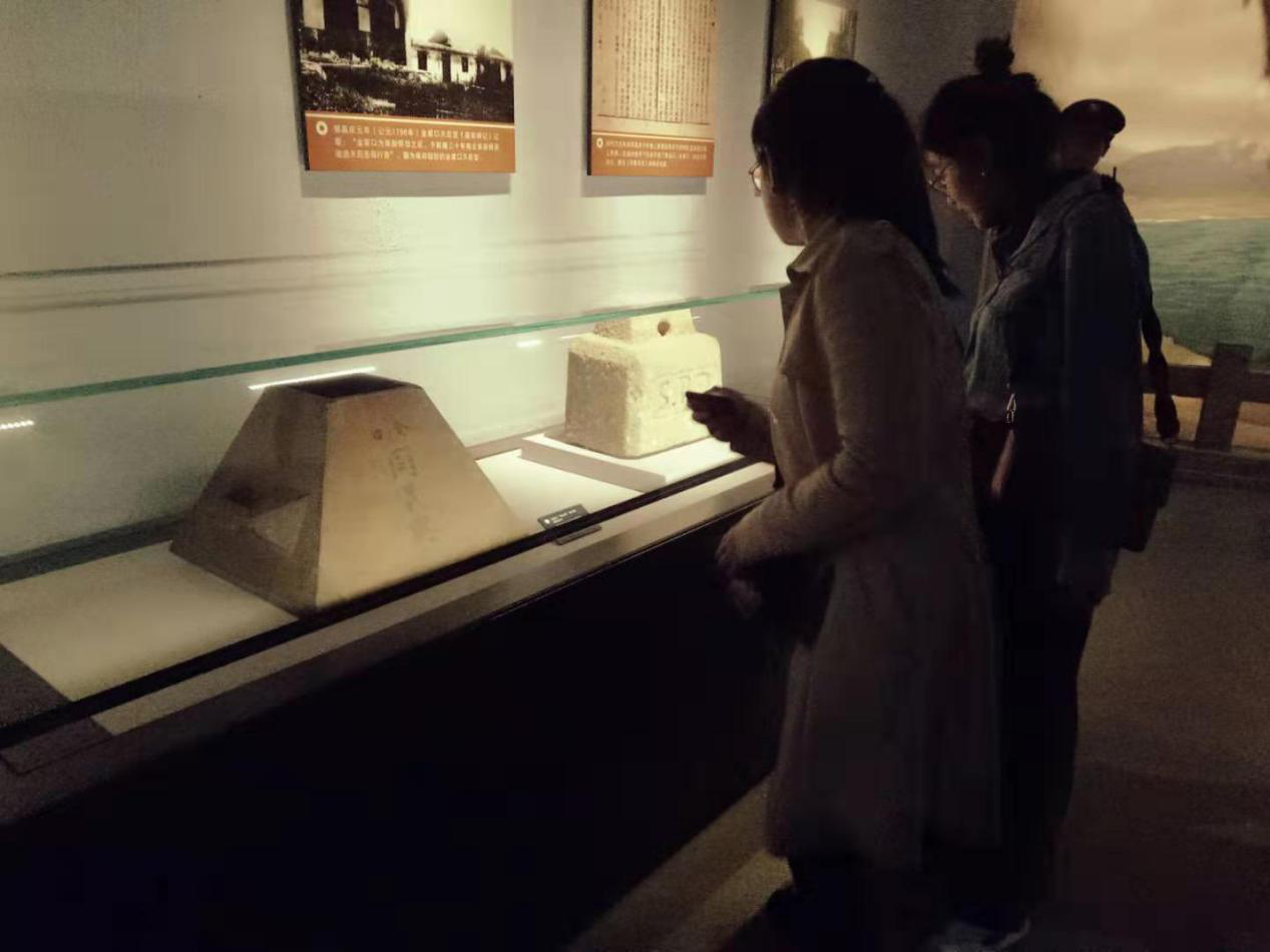 青岛市博物馆是国家一级博物馆和全国古籍重点保护单位,馆藏文物包括书法、绘画、陶瓷器、铜器、玉器、钱币、玺印、甲骨、竹木牙角器等三十余个门类十多万件,其中书法、陶瓷器、玉器、钱币为馆藏特色。馆内还收藏有4万余件青岛历史发展各阶段留下来的文物资料,反映了青岛建置以来城市的发展,是全面了解青岛历史的重要场所。在《青岛史话——青岛地区历史陈列》的上部《古韵悠长》展厅中,展览共分为:“东夷文明溯源”、“齐国经济重镇”、“秦皇汉武巡疆”、“北方千载古港”、“道教鼎盛崂山”、“明清海防要地”六个单元。通过对于这些单元传世珍贵文物的了解,同学们共同回味了上起新石器时期,下迄青岛建置前青岛地区古代历史发展的基本脉络及诸多重大历史事件。