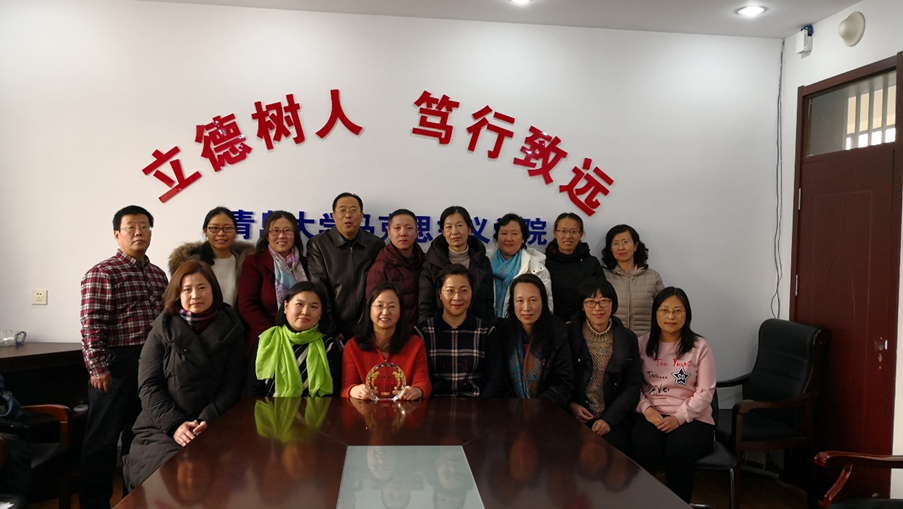 思想政治教育系“粟霞老师从教纪念暨光荣退休座谈会”于2018年1月8日上午10:00—12:30在Beat365唯一官方网站小会议室召开。会议由系支部书记庚建凤老师主持,院党委书记赵茗老师,院党委副书记徐海春老师参加了会议。赵茗书记作讲话并为粟霞老师颁发学院精心准备的从教纪念牌并合影留念。