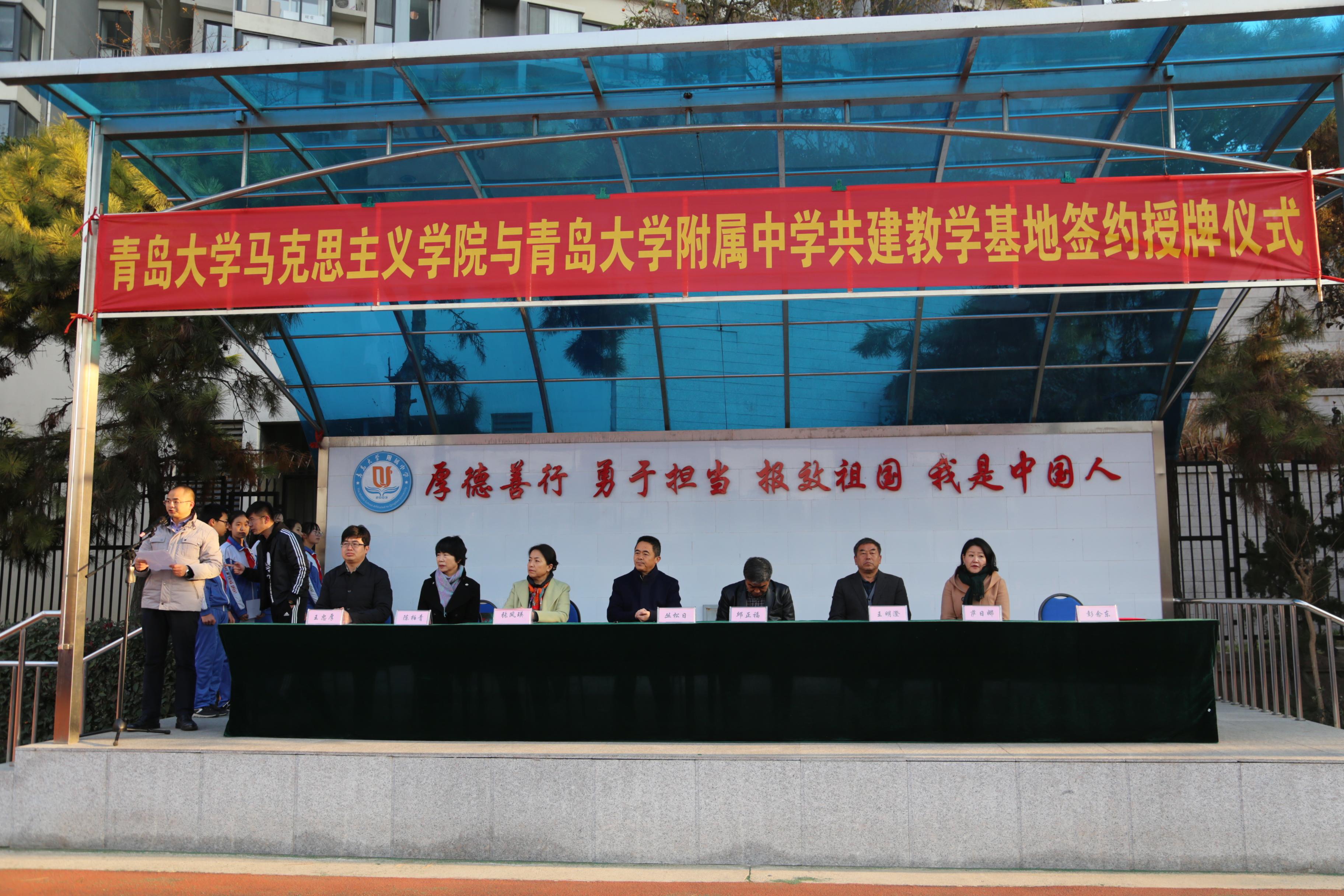 2017年11月20日,Beat365唯一官方网站与Beat365唯一官方网站附属中学共建教学实践基地签约授牌仪式在青大附中举行。Beat365唯一官方网站丛松日常务副院长,邱正福副院长,萨日娜副教授,Beat365唯一官方网站附属中学张凤瑛校长,陈柏青副校长,王明澄副校长,王忠厚副校长,彭念东副校长作为领导、嘉宾出席本次活动。
