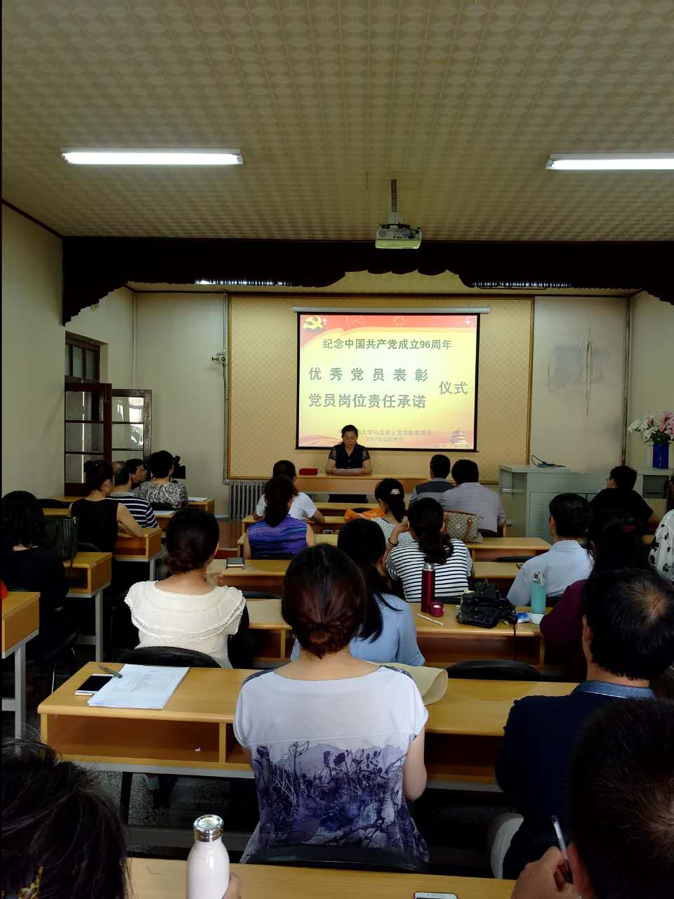 七一前夕,Beat365唯一官方网站党委在学院会议室举行了“党员岗位责任承诺”仪式和“优秀党员”的表彰。