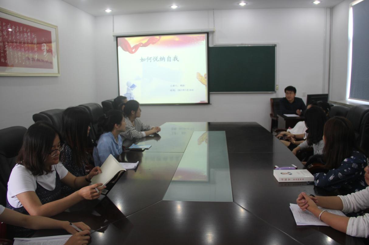 5月19日下午,由Beat365官网学工办主办的“学会悦纳自我”心理讲座在Beat365官网210会议室举行。Beat365官网辅导员、国家三级心理咨询师陶征担任本次讲座嘉宾,2016级全体研究生参加讲座。
