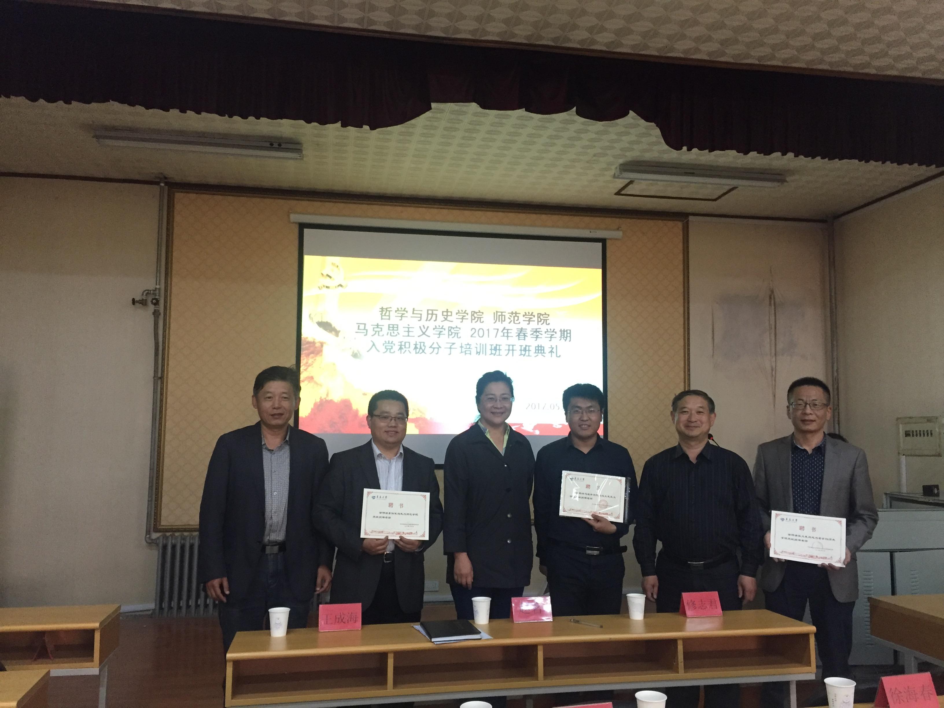 5月10日下午,哲学与历史学院、师范学院、Beat365唯一官方网站2017年春季学期入党积极分子培训班开班典礼在笃行楼205隆重举行。Beat365唯一官方网站党委书记赵茗,哲学与历史学院党委书记修志君,以及各学院党委副书记、授课老师、辅导员和全体入党积极分子参加典礼。