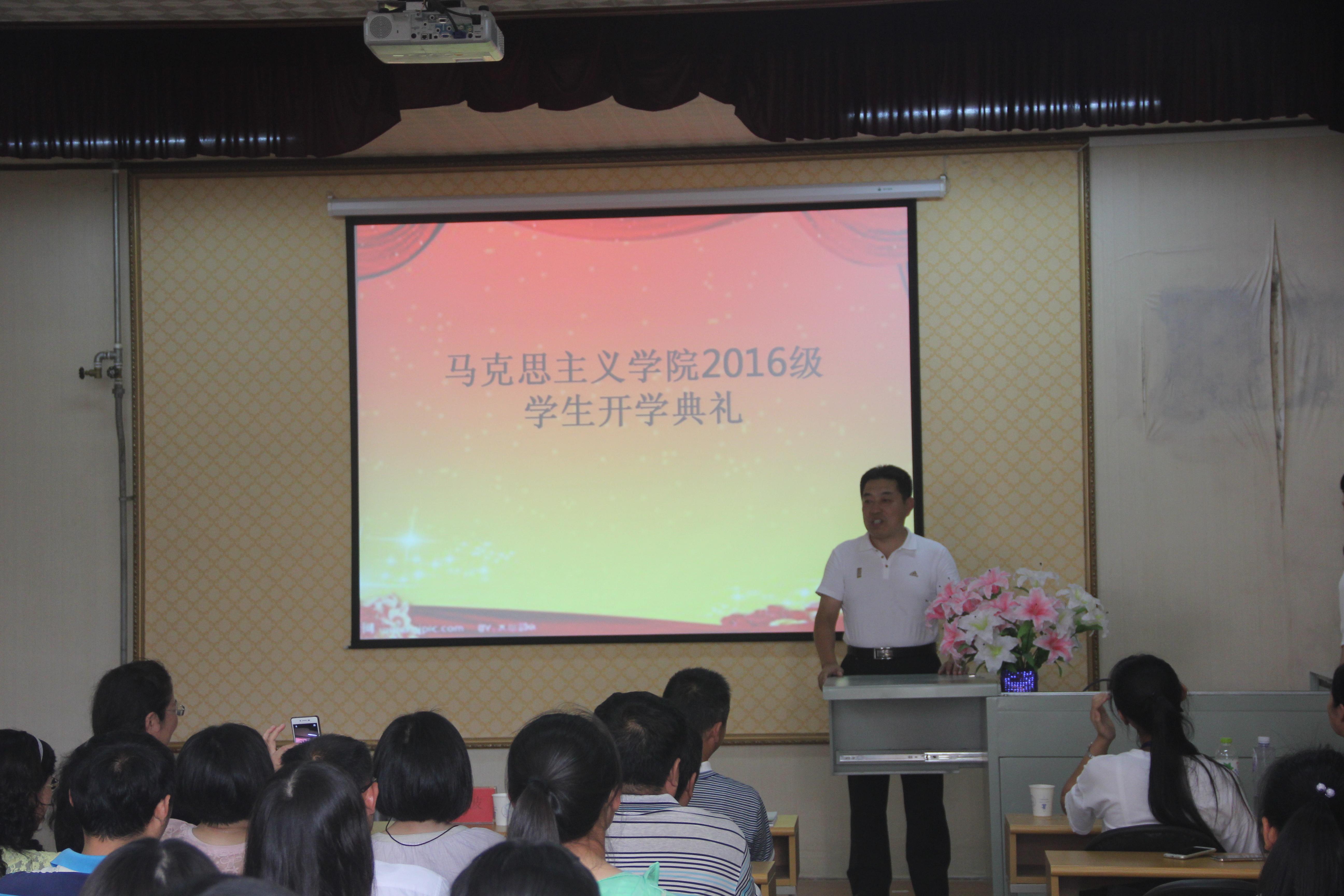 9月22日下午,Beat365唯一官方网站2016级学生开学典礼在笃行楼206室举行。校党委副书记、Beat365唯一官方网站院长杜方波出席开学典礼并讲话,学院党委书记赵茗、常务副院长丛松日、党委副书记徐海春、副院长邱正福、学院各教研室主任和支部书记、辅导员和2016级全体新生出席开学典礼。