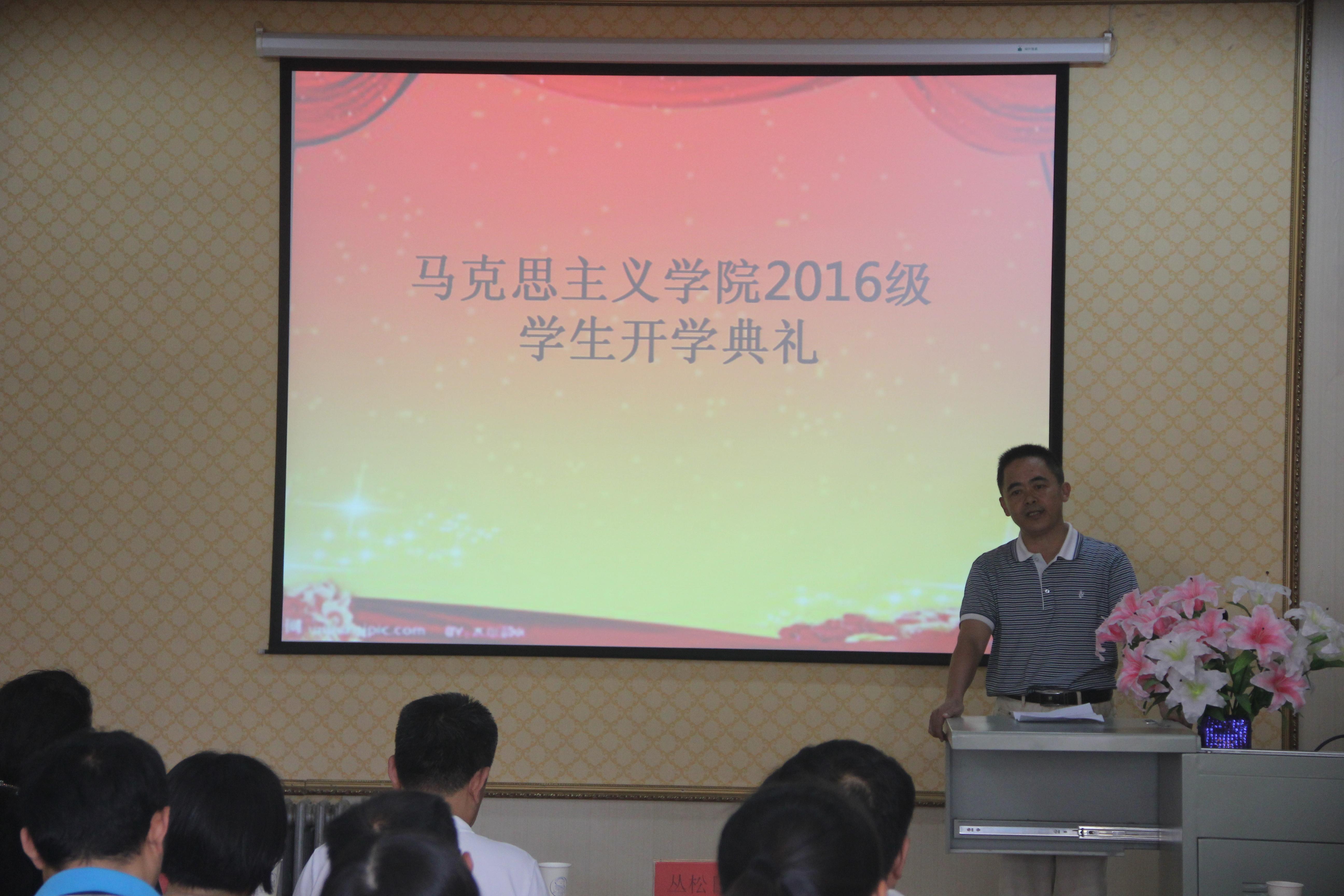 丛松日代表学院向2016级新生表示衷心的祝贺和欢迎。他在简要介绍学院的历史之后,与同学们交流了马克思主义与我国社会主义发展的必然联系,以及马克思主义学科发展的重要意义。他勉励同学们珍惜在青大的宝贵时光,不忘初心,勇往直前。