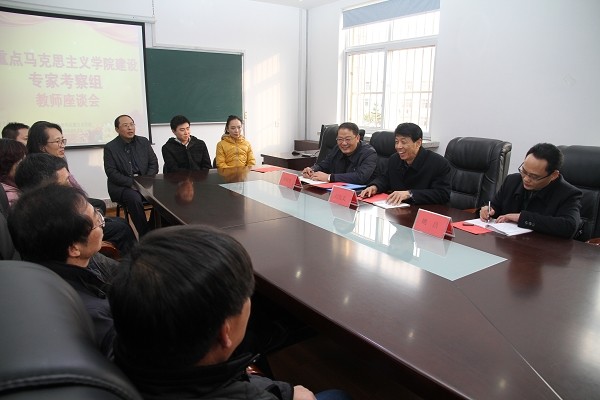 2016年1月11日下午,省重点Beat365唯一官方网站建设专家考察组听取学校专题汇报会后,在校党委副书记杜方波的陪同下实地考察了Beat365官网的图书资料室、多媒体教室、各教研室、教学和党政人员办公室等教学设施和办公条件。专家考察组对Beat365官网的图书资料室的软硬件建设和教研室的办公条件给予充分肯定。随后,考察组召开了由教授、讲师等13人组成的教师座谈会,就马克思主义学科建设、高素质教师队伍建设、提高思政课教学质量、加强思政课教学研究和科研立项、加强教师培训进修等,与教师们进行了座谈交流,听取了大家的意见和建议。教师们也纷纷表示,有学校的大力支持,有全体马院人的共同努力,对学院的美好未来充满信心!