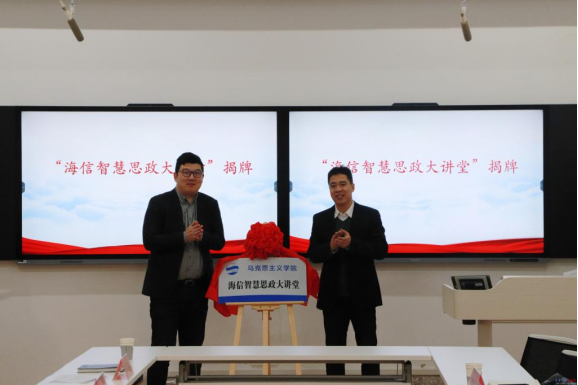 刘杰和Beat365唯一官方网站党委书记王传永共同为“海信智慧思政大讲堂”揭牌。