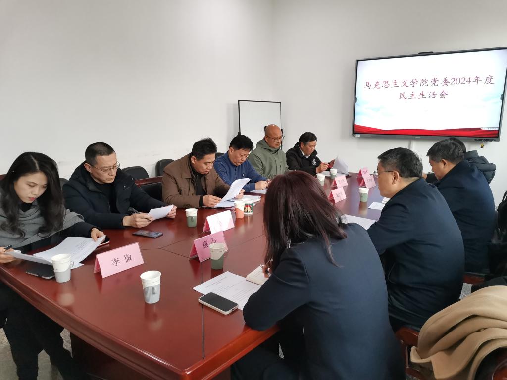 胡钦晓作点评指导。他指出,从今天的会议可以看出,学院党委对这次的民主生活会非常重视,会前的准备扎实充分,会议紧扣主题,自我批评开门见山,相互批评开诚布公,达到了统一思想、增进团结、改进作风、促进工作的目的。但是,在过去的2024年,学院有成绩也有不足,比如,学院长远发展的思路还不够清晰,学科建设方向还需要进一步凝练,“学院办大学”落实落地的举措还不够精准,新班子统筹谋划推进发展的能力还需要提升等。他强调,为了将民主生活会的成果转化为推进学院事业发展的动力和举措,需要做好五项工作:一是班子要带头提振干事创业的精气神,采取有效措施,充分调动全体师生聚力发展的积极性,形成蓬勃向上的发展氛围;二是要广泛开展调查研究,摸清家底,找准学院、学科发展现状在省内高校的定位;三是要从马克思主义理论学科建设需求出发狠抓科学研究,找准方向,汇聚团队,开展有组织的科研活动,以科学研究水平提升谋突破;四是始终把思政课教学作为第一要务,抓实抓细,切实加强思政课建设,加强集体备课,提升课程教学质量,打造一批一流课程、思政金课;五是要坚持目标导向和问题导向相结合,将“当下改”与“长久立”相结合,持续用力狠抓整改落实,做好民主生活会“后半篇”文章,努力开创学院事业发展的新局面。