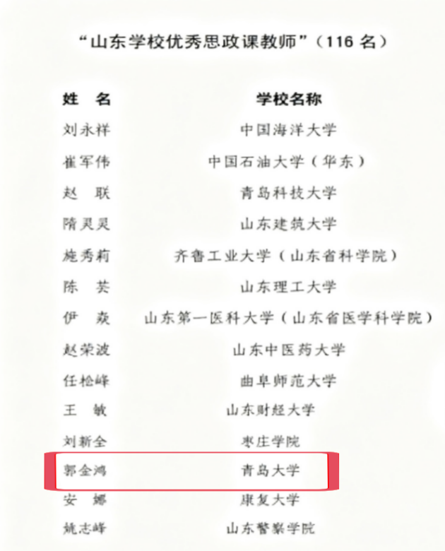近日,中共山东省委教育工作委员会印发《关于公布2024年山东“十佳百优”学校思政课教师和高校辅导员评选结果的通知》,Beat365官网郭金鸿教授获“山东学校优秀思政课教师”荣誉称号。