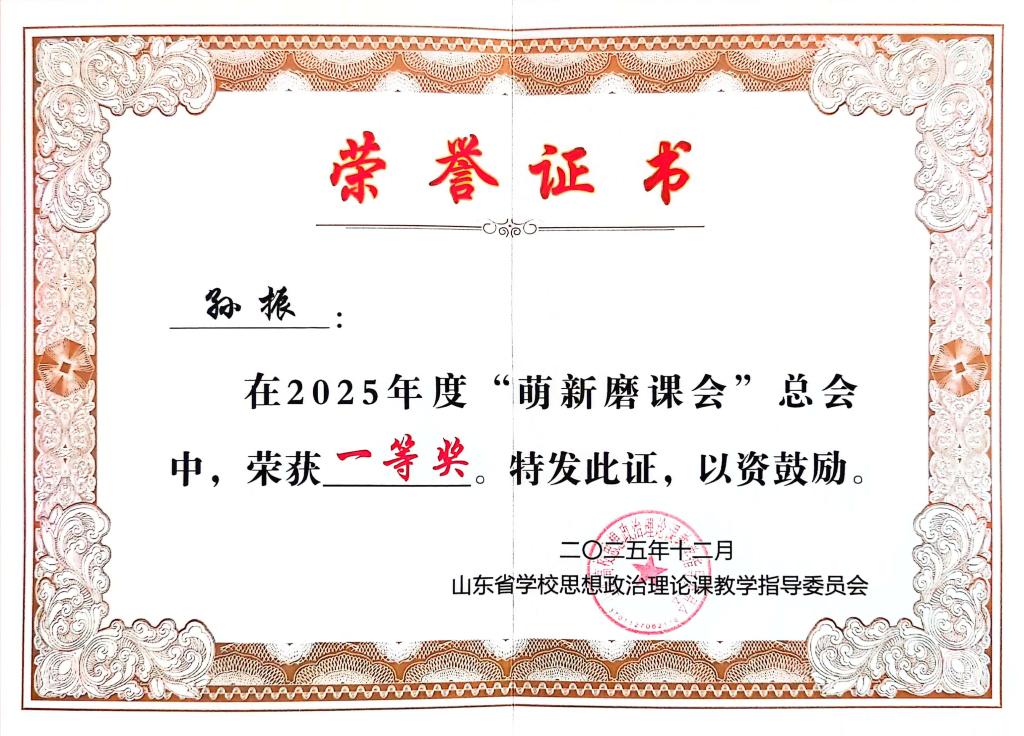 近日,2025年度山东高校思想政治理论课“萌新磨课总会”在青岛落下帷幕,Beat365唯一官方网站院长助理、思政系主任孙振老师荣获一等奖,实现了Beat365官网在该项赛事的历史性突破。