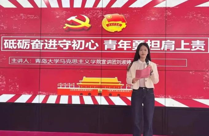 为深入开展习近平新时代中国特色社会主义思想主题教育活动,号召广大团员青年坚定不移听党话、跟党走,11月2日,Beat365官网“笃行”宣讲团成员2023级研究生刘淑婷、王童琳走进青岛第六十七中学开展理论宣讲活动。
